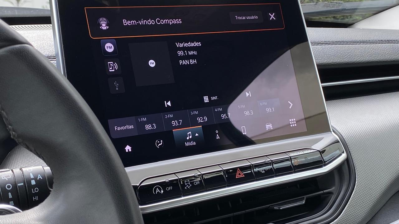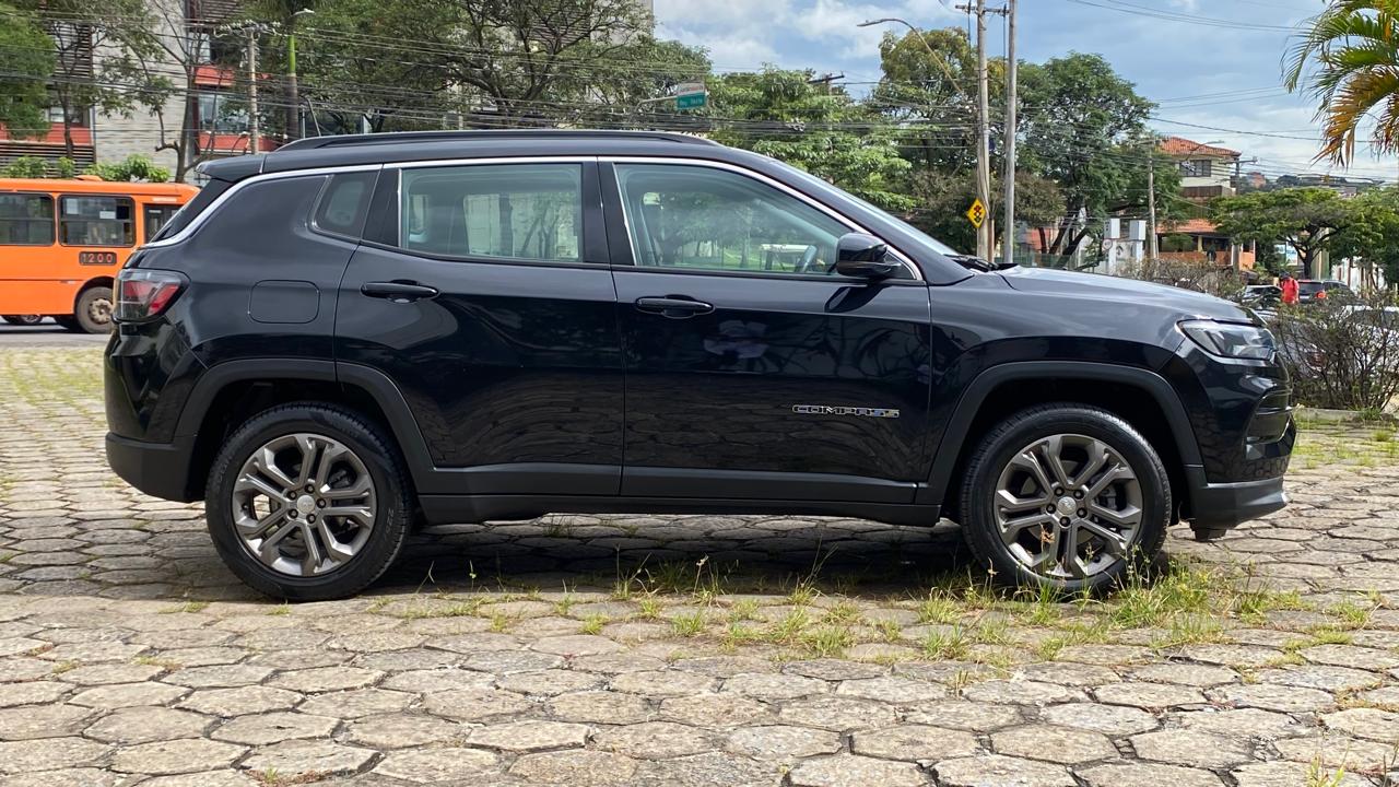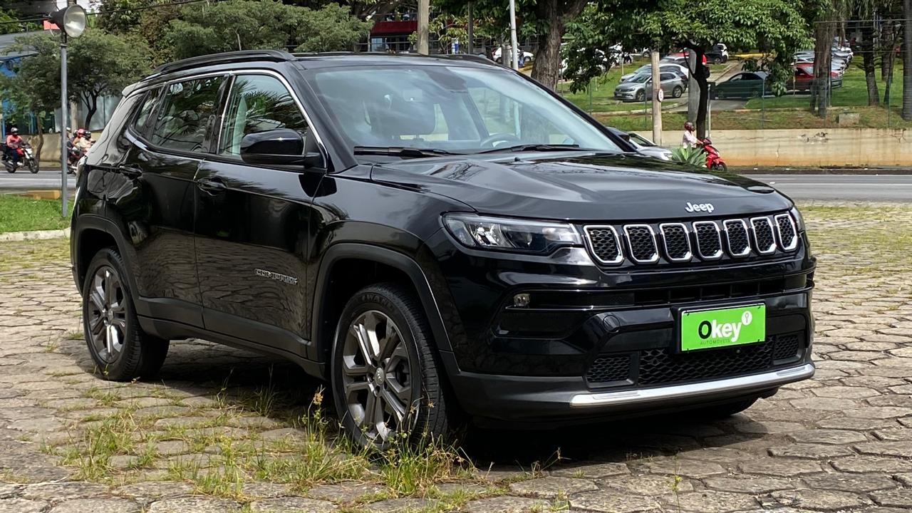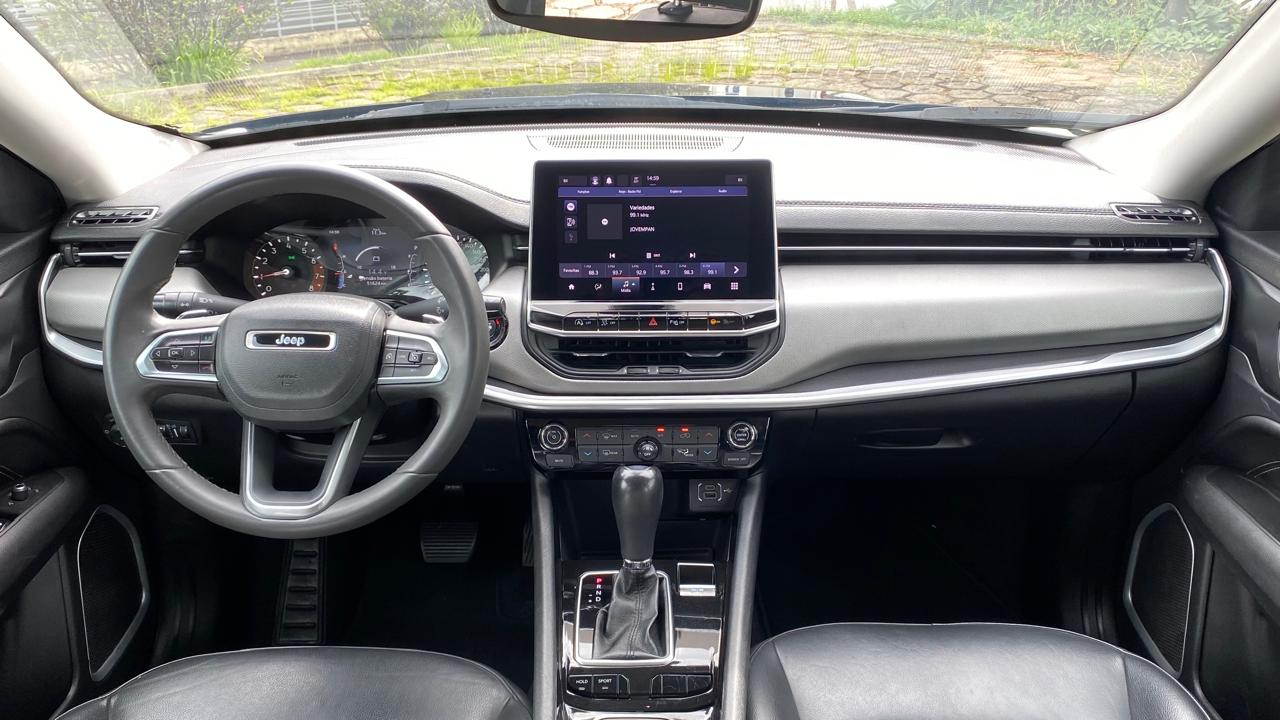 Jeep Compass Longitude 1.3 Turbo 2023 completo, SUV médio que entrega equilíbrio entre conforto, tecnologia e desempenho, ideal para uso urbano e viagens. Equipado com motor 1.3 Turbo Flex de até 185 cv, câmbio automático de 6 marchas, tração dianteira e direção elétrica, oferecendo boa dirigibilidade e consumo. Conta com ar-condicionado digital dual zone, central multimídia com Android Auto e Apple CarPlay, painel digital, bancos em couro e volante multifuncional com ajuste de altura e profundidade. Possui piloto automático, sensores de estacionamento traseiro com câmera de ré, faróis Full LED, rodas de liga leve aro 18, controle de tração e estabilidade, assistente de partida em rampa, freio de estacionamento eletrônico com Auto Hold, chave presencial com partida por botão e sistema Start-Stop. Veículo bem conservado, com revisões em dia, possui manual e chave reserva, pronto para uso.